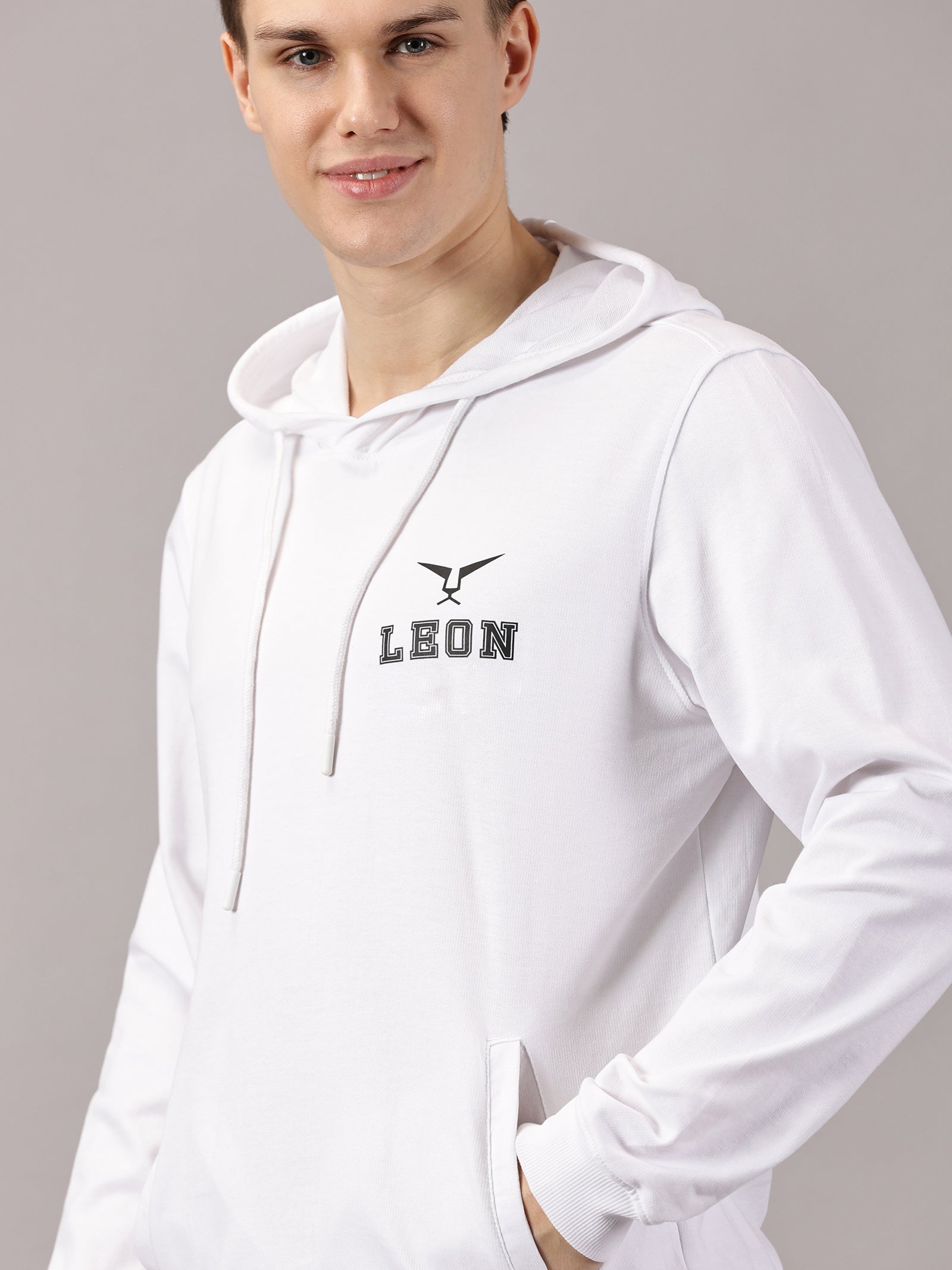 - Long sleeves with hooded drawstring, kangaroo pockets on both sides