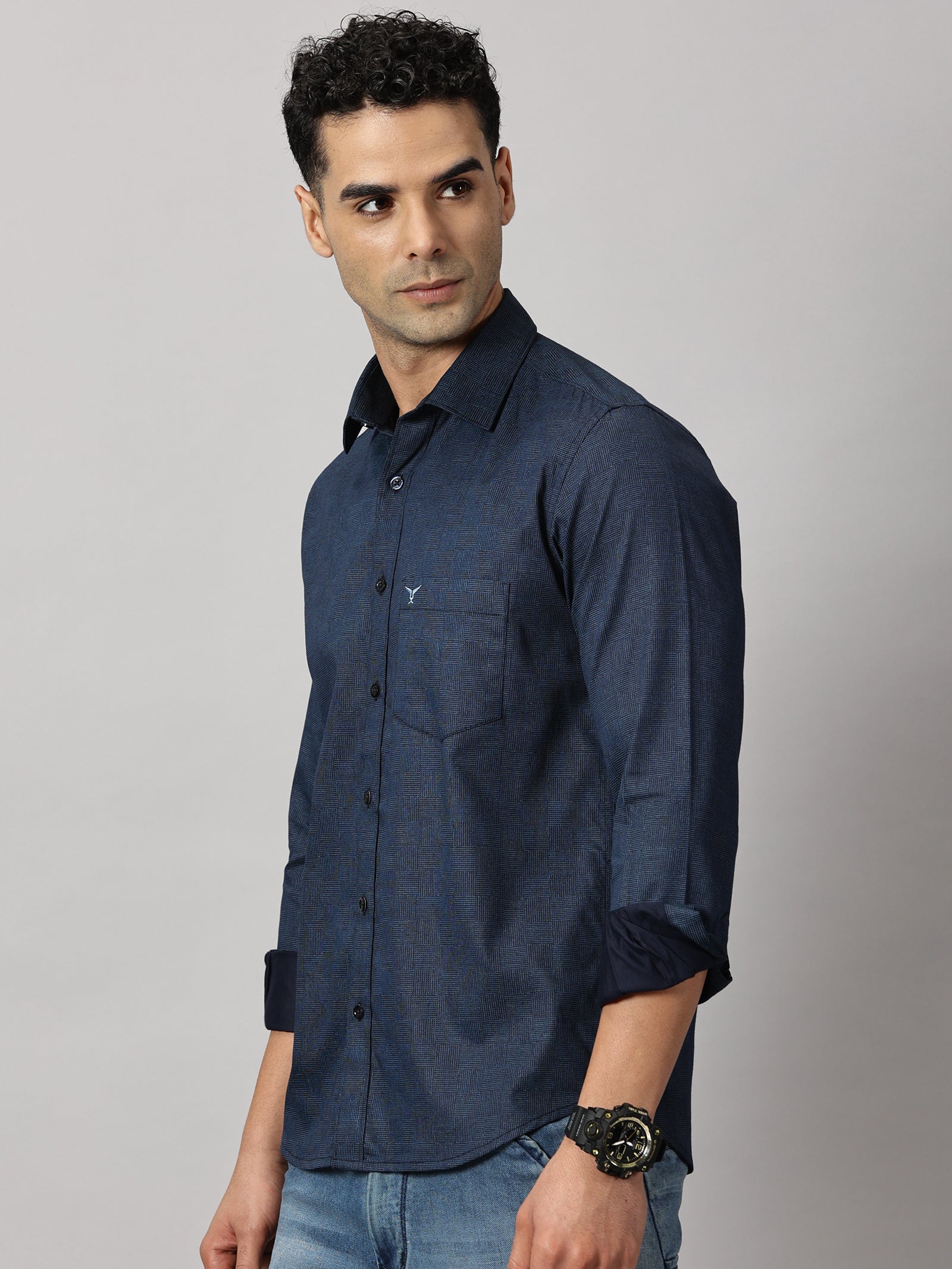 Casulas : Geometric Textured Shirt